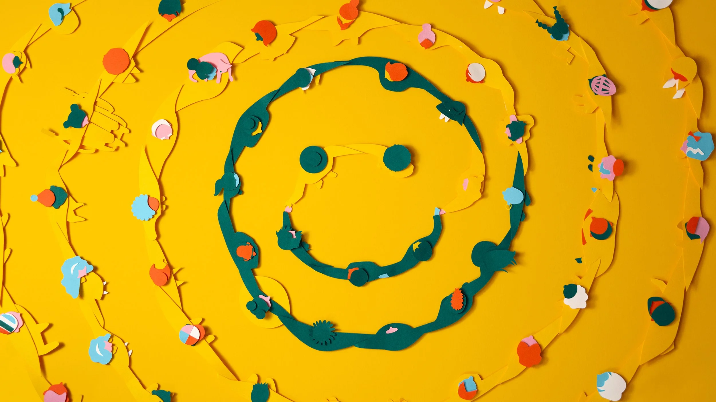 Six podcast cover artworks & an animation for the series ‘Hello Happiness’. In order of images, they represent the following positive themes: Happiness, Hope, Resolve, Joy, Tranquility & Ecstasy.