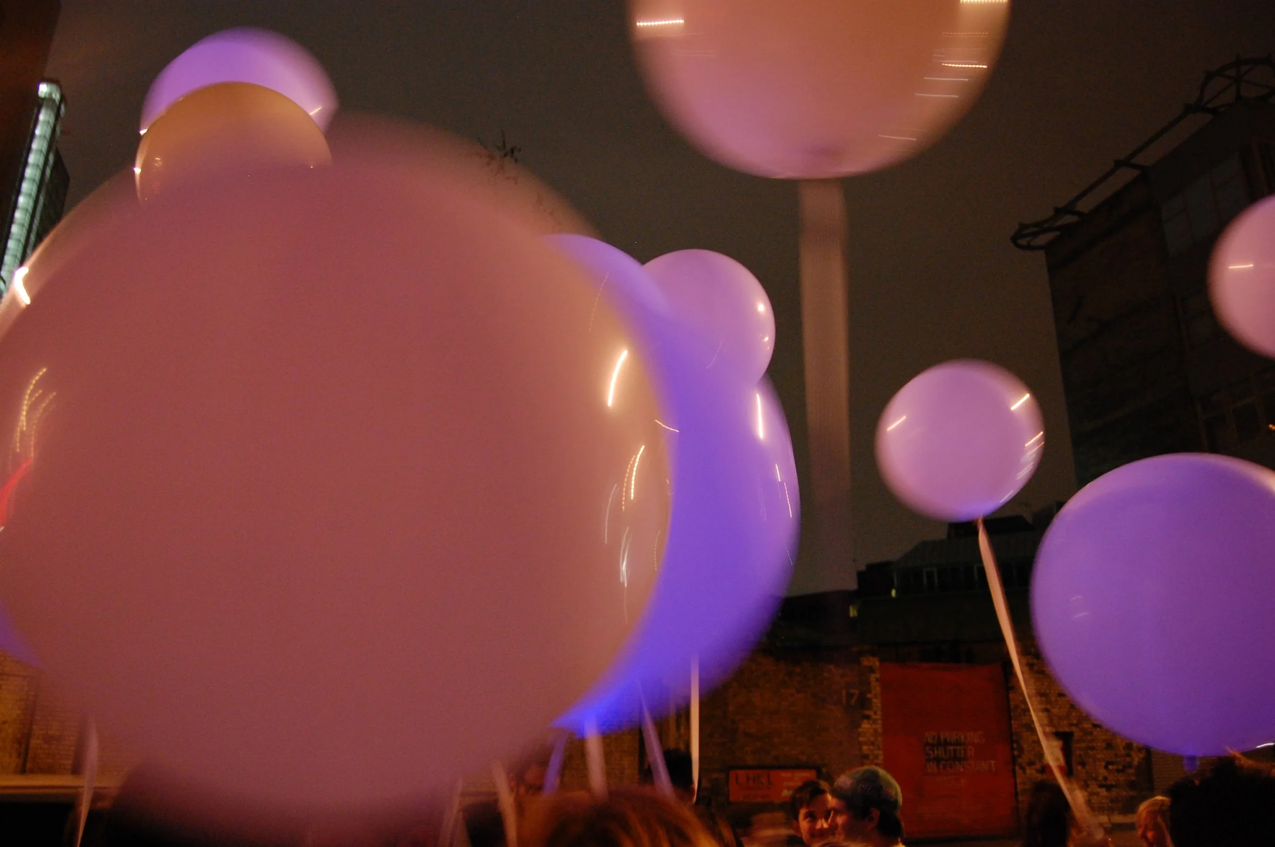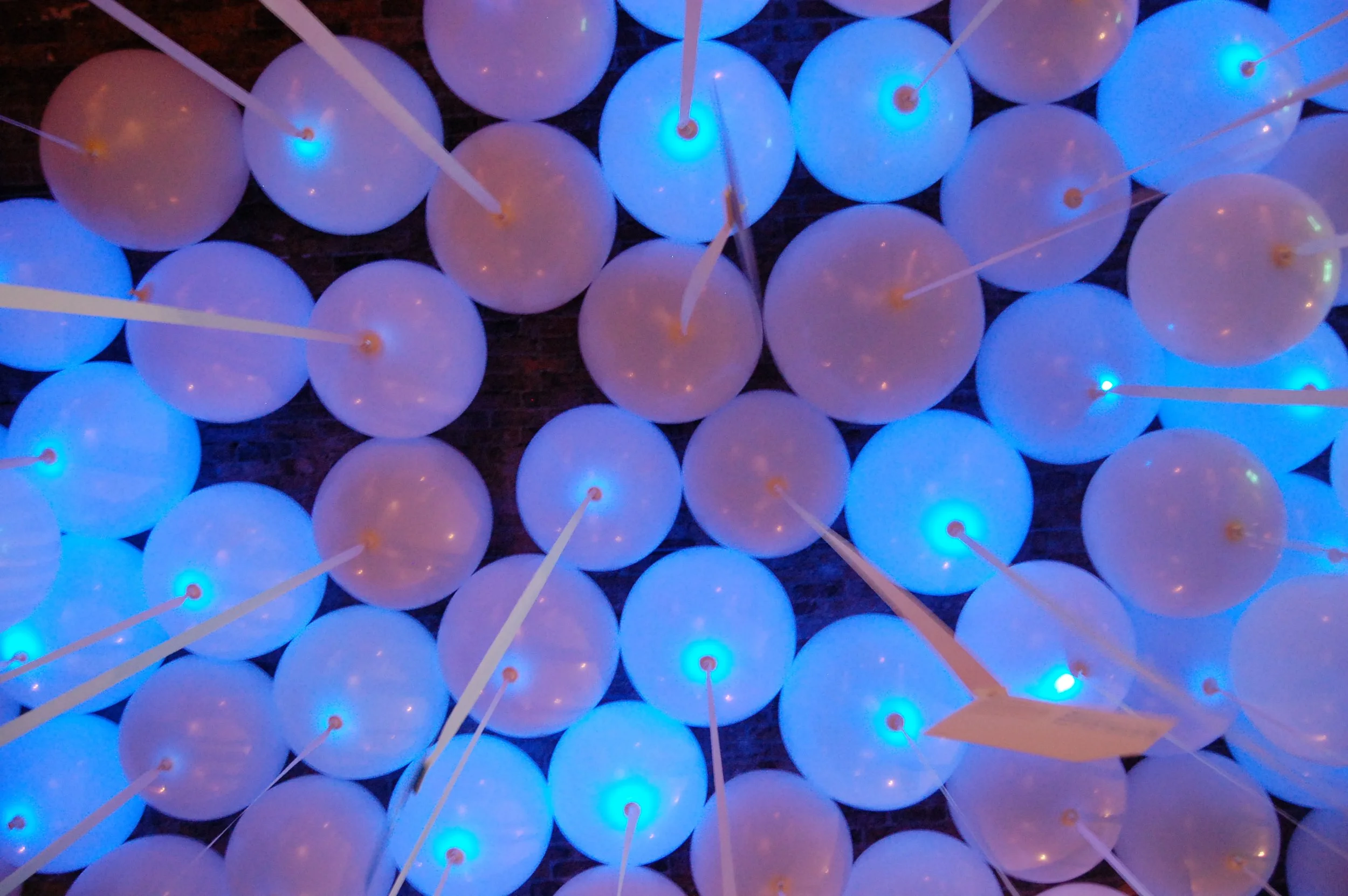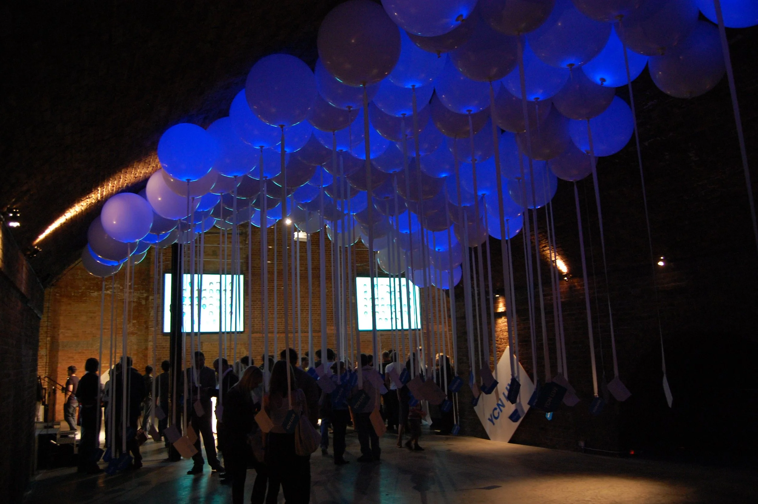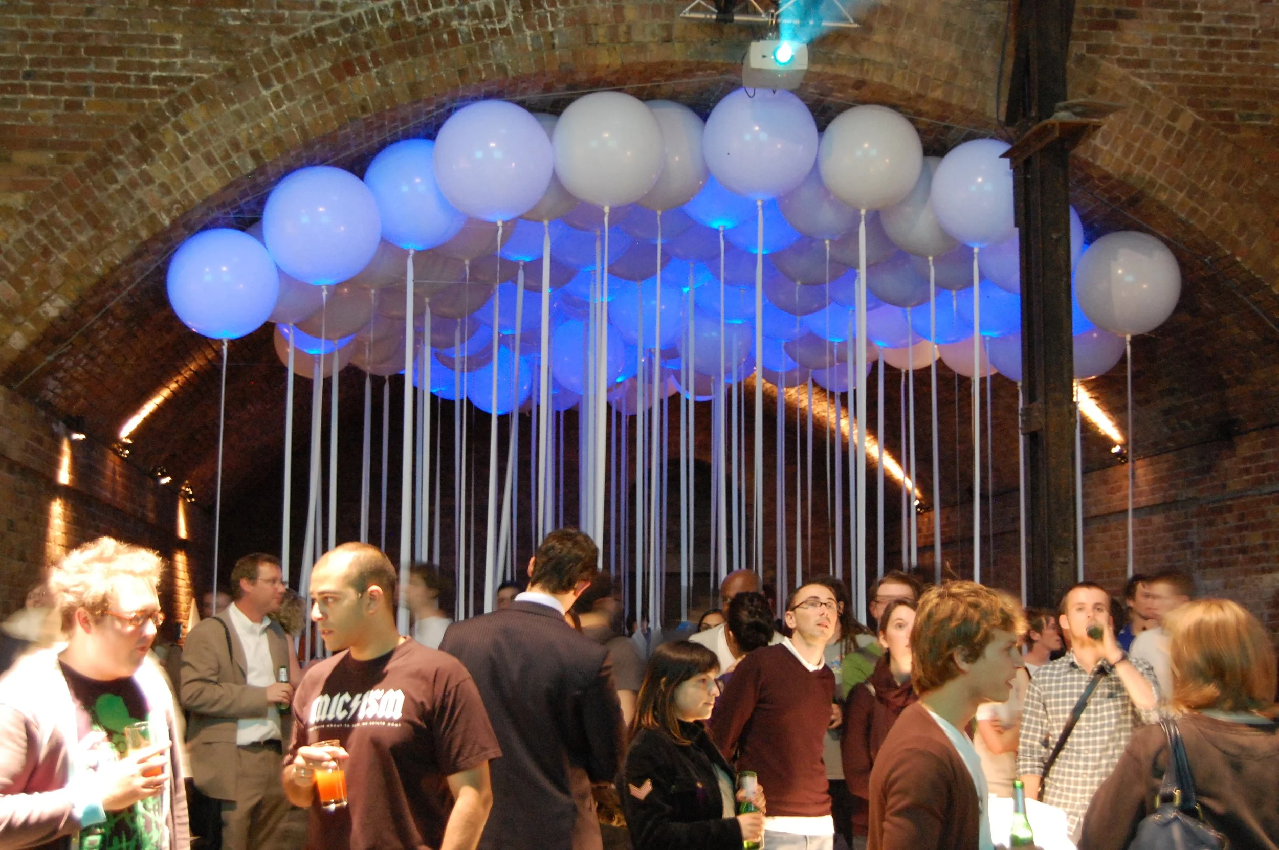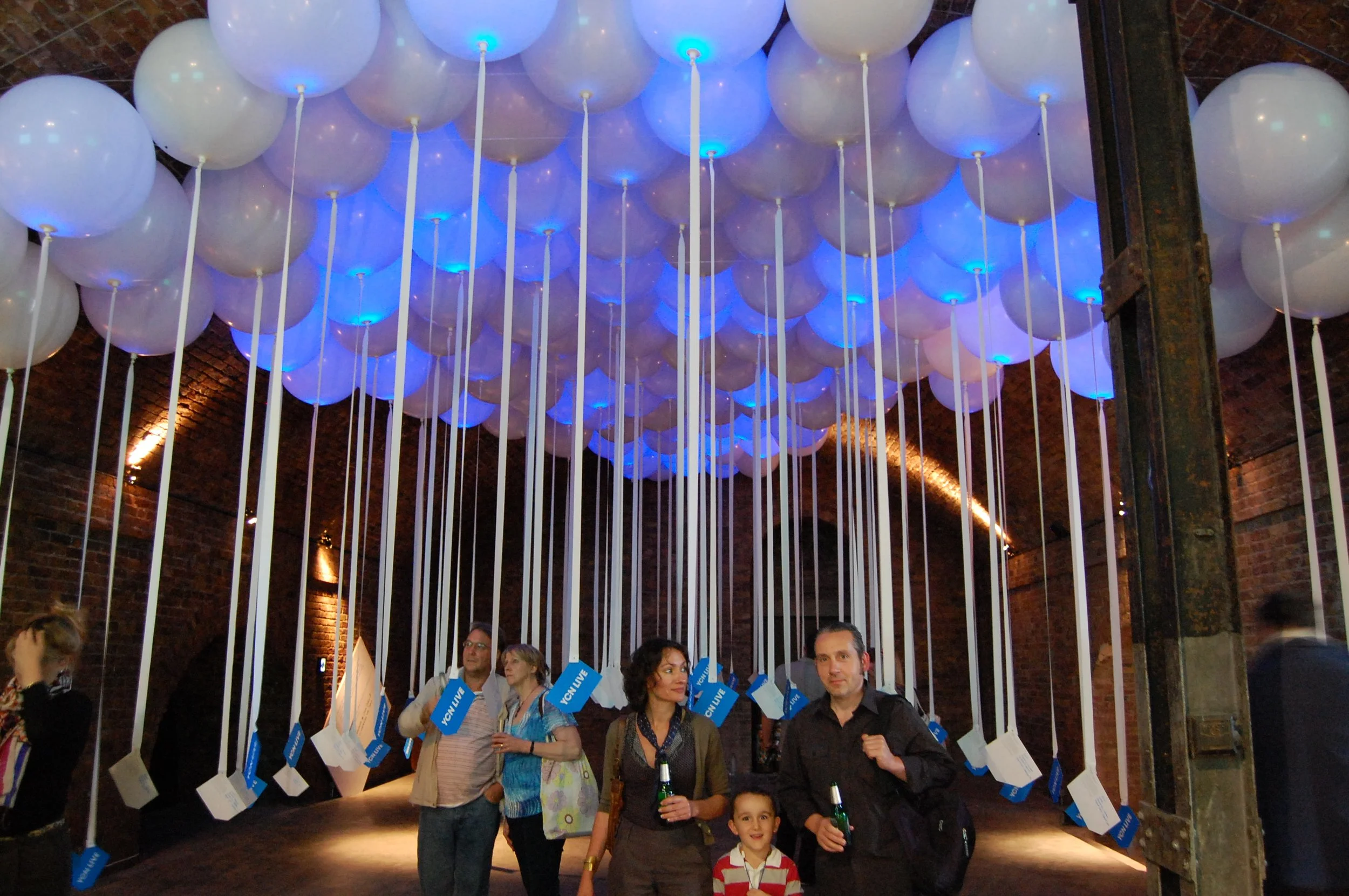 Rose Clarke and I created an interactive giant balloon installation that looked like a giant jellyfish floating beneath the Shoreditch Underground arches. We embedded responsive, pulsing LED lights—commissioned from Tinker—inside the balloons. The lights reacted and glowed whenever someone tugged a balloon and the trailing ribbons held information tags about YCN.